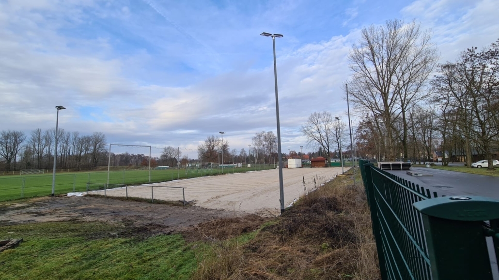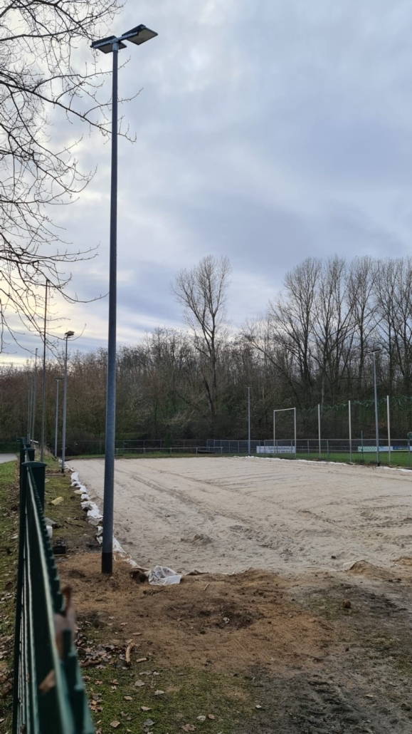 Das Feld wurde vergrößert, um Platz für 4 Spielfelder zu haben und das Flutlicht funktioniert auch bereits!